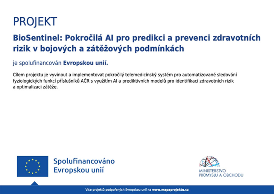 Univerzita obrany uspěla v náročné konkurenci projektů v rámci výzvy OP TAK – Aplikace III (Deep Tech) a získala podporu pro řešení nového výzkumného projektu s názvem BioSentinel – Pokročilá AI pro predikci a prevenci zdravotních rizik v bojových a zátěžových podmínkách.